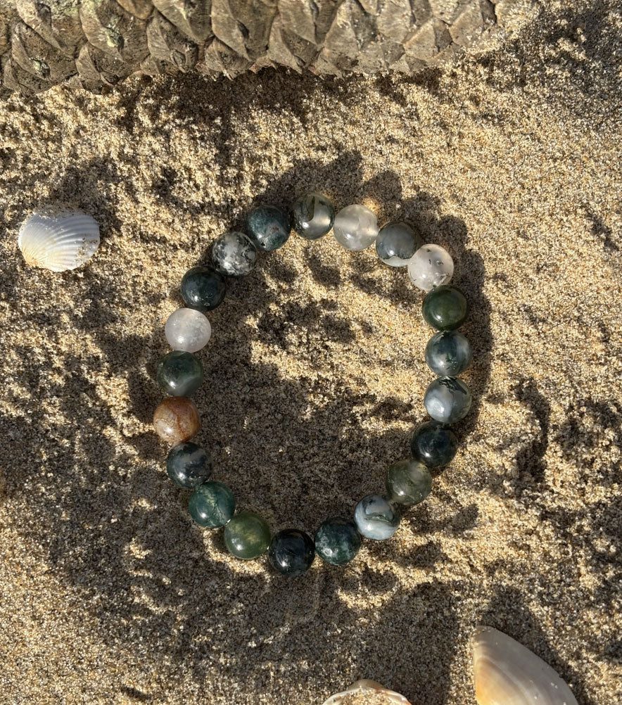 La douceur de la nature s’invite sur votre poignet avec notre bracelet en Agate mousse, une pierre connue pour ses teintes vertes profondes rappelant les forêts et les paysages luxuriants. Composé de pierres naturelles soigneusement sélectionnées, ce bracelet allie esthétisme et énergie bienfaisante pour harmoniser votre quotidien.